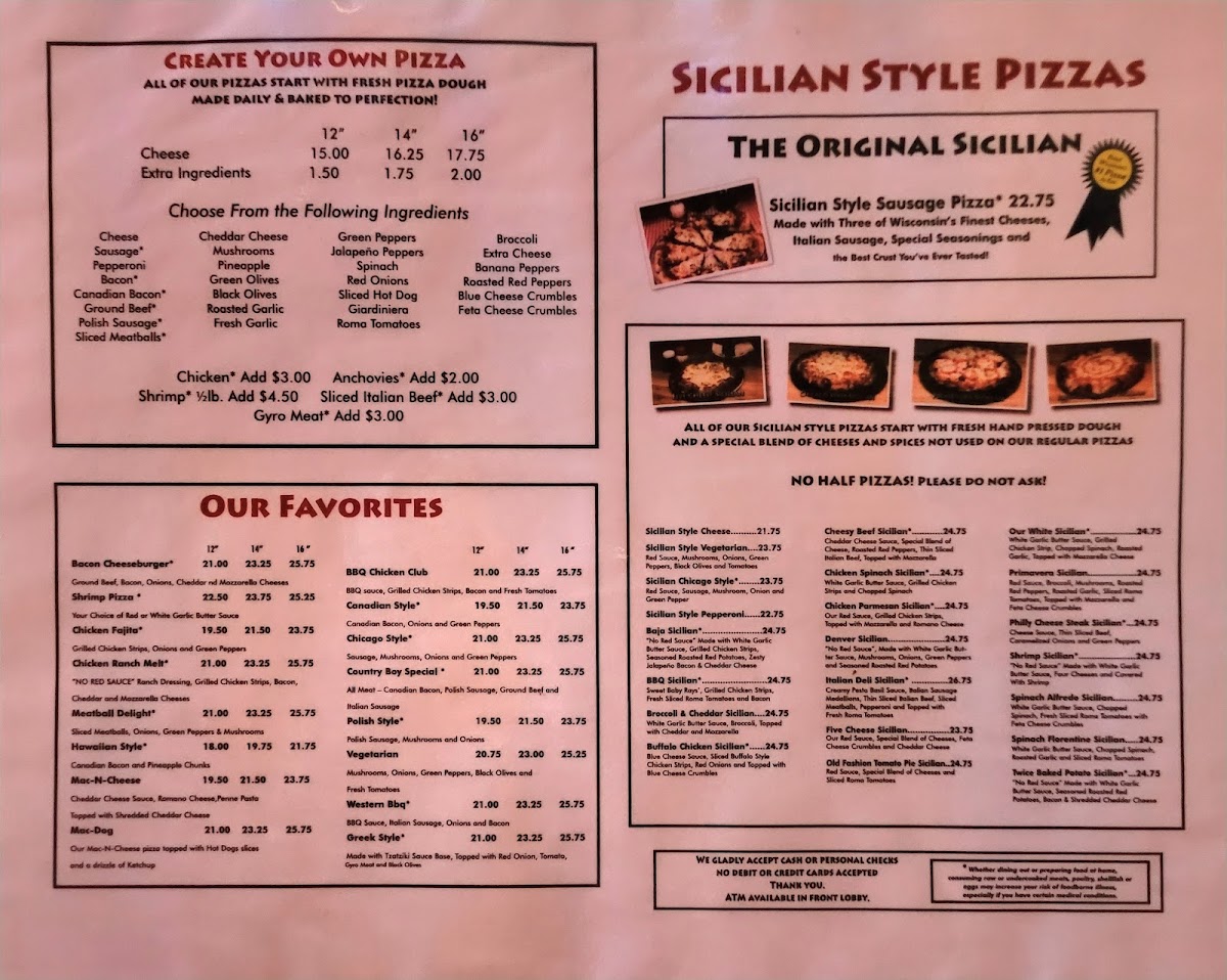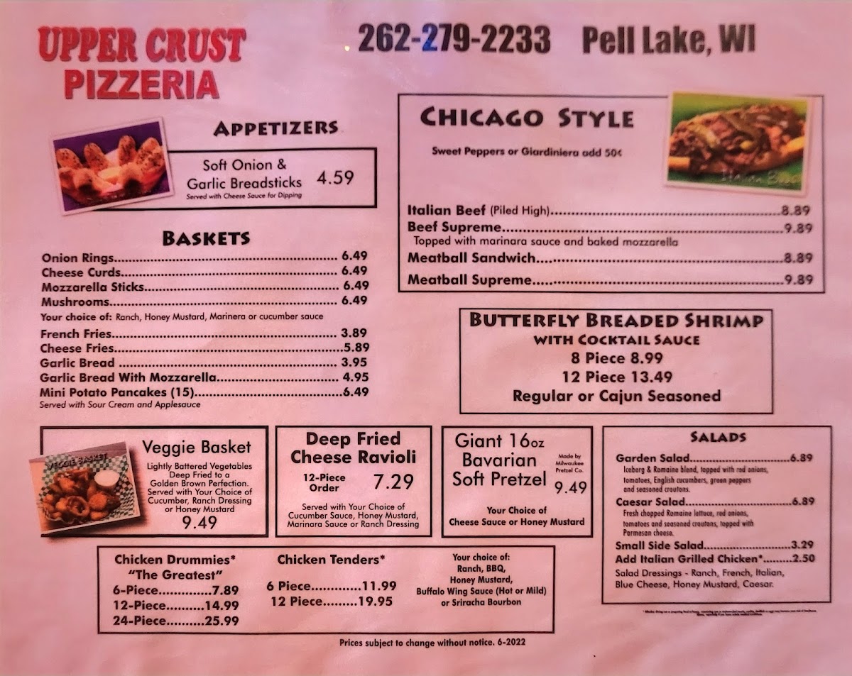 Introducing the menu of Upper Crust Pizzeria - Pell Lake is like embarking on a delightful culinary journey. Nestled in the charming Pell Lake, WI, this pizzeria offers a unique twist on classic flavors. The standout option? Their Sicilian-style pizzas, featuring a variety of toppings, including a mouthwatering Baja Sicilian and Buffalo Chicken Sicilian. Each bite offers a perfect harmony of flavors that evokes nostalgia and comfort.